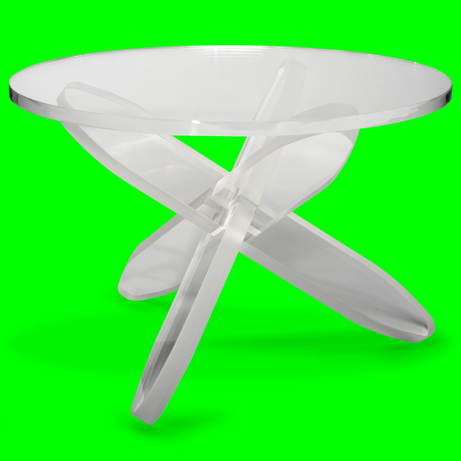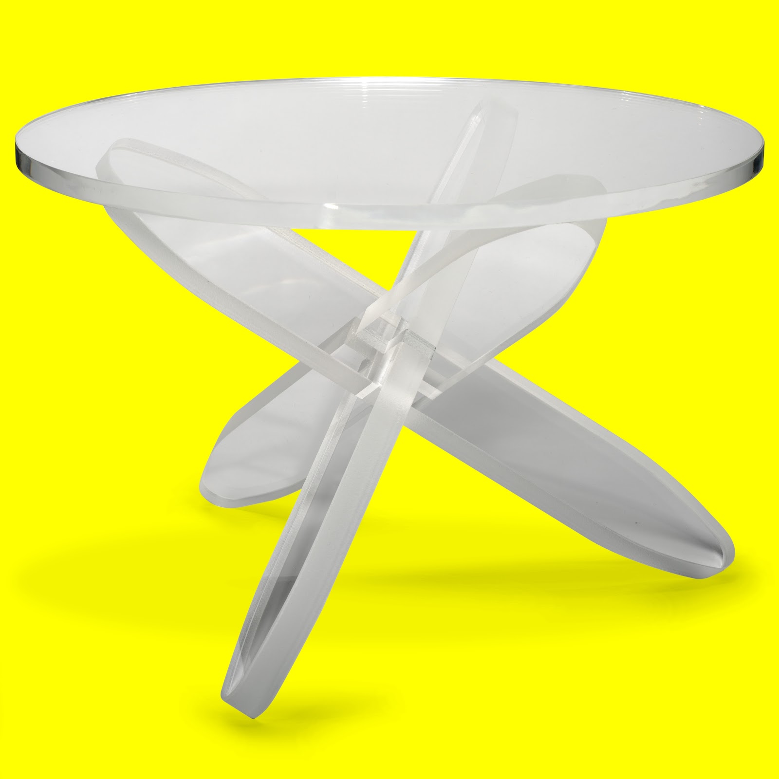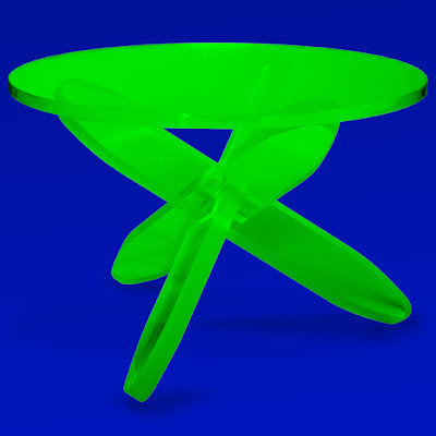 Atomic is a crossover of form and function, and while essentially it is intended to be used as a table, it can comfortably pass as art. Each of Mark's furniture designs makes good on delivering everyday functionality but in an extraordinary way. In the case of the Atomic side table, I quickly made some observations: A) being transparent it is 95 per cent invisible, posing no visual clutter; B) the four 2D parts fit together to form a sturdy 3D object, with a neat trick in the middle; C) just looking at it plays with communicating a modeled vintage diagram of an atom with 3 electrons orbiting a nucleus, let's say Lithium, which is also clever; D) it looks really cool, especially in hard light that makes the edges glow and casting some very sharply defined yet oval shadows. As for the product photography, we produced two image sets. The first, being the more challenging one, and a show stopper. We worked on it together in the loading dock at night -- light, less traffic, great concrete look. I did the second shoot solo and at a more leisurely pace in the studio, producing clean images with standard camera angles for a catalog -- front, top, other. / markoryan.com / ...
