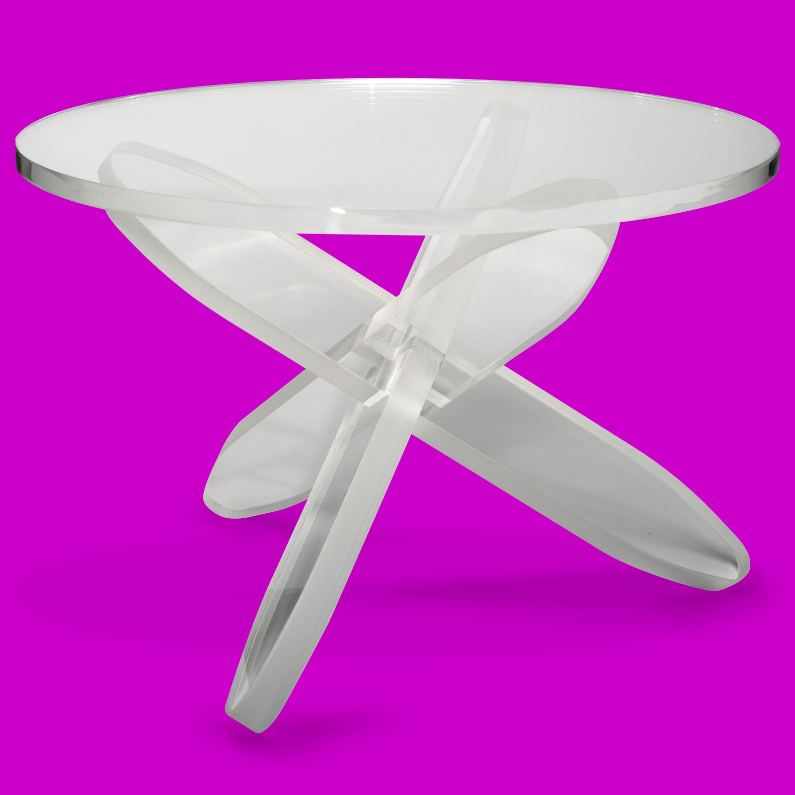 Atomic is a crossover of form and function, and while essentially it is intended to be used as a table, it can comfortably pass as art. Each of Mark's furniture designs makes good on delivering everyday functionality but in an extraordinary way. In the case of the Atomic side table, I quickly made some observations: A) being transparent it is 95 per cent invisible, posing no visual clutter; B) the four 2D parts fit together to form a sturdy 3D object, with a neat trick in the middle; C) just looking at it plays with communicating a modeled vintage diagram of an atom with 3 electrons orbiting a nucleus, let's say Lithium, which is also clever; D) it looks really cool, especially in hard light that makes the edges glow and casting some very sharply defined yet oval shadows. As for the product photography, we produced two image sets. The first, being the more challenging one, and a show stopper. We worked on it together in the loading dock at night -- light, less traffic, great concrete look. I did the second shoot solo and at a more leisurely pace in the studio, producing clean images with standard camera angles for a catalog -- front, top, other. / markoryan.com / ...