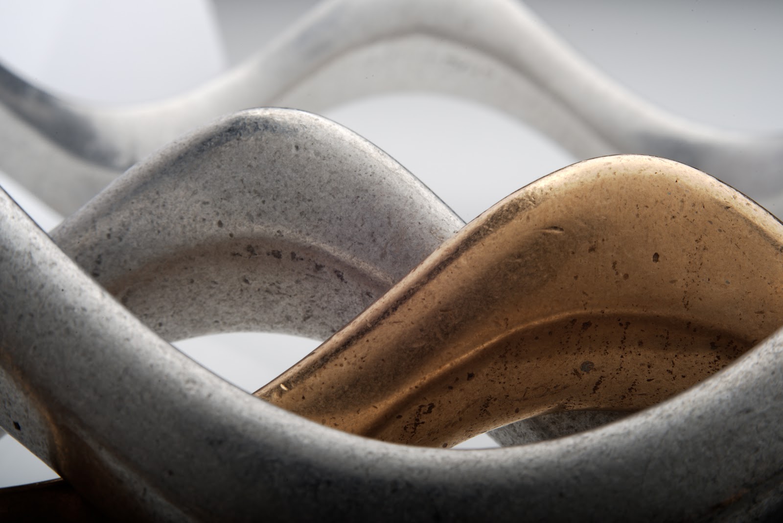 Oliver's trivet is functional and sculptural. It looks abstract, without a clear sense of purpose or scale. The challenge was to show what this object is for, as well as showing its artistic potential. It was fortunate that Oliver provided 3 pieces for me to work with, in aluminium and in bronze.